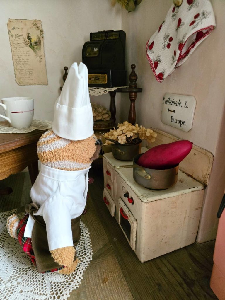 今では13体にも増えられたとのこと、今回はお髭をはやしたこの方のコック服に挑戦です。